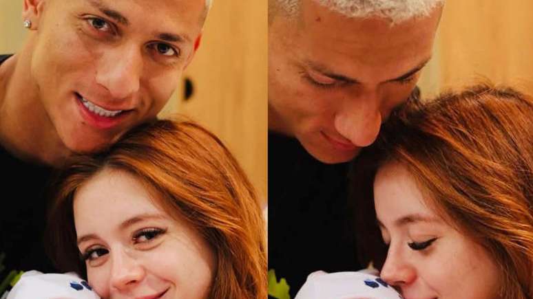 Jogador Richarlison anuncia o nascimento do primeiro filho, fruto do relacionamento com a influenciadora Amanda Araújo. Veja fotos