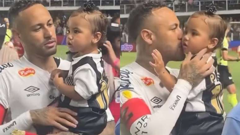 Jogador Neymar protagoniza momento fofo com a filha Mavie antes de iniciar partida pelo Santos