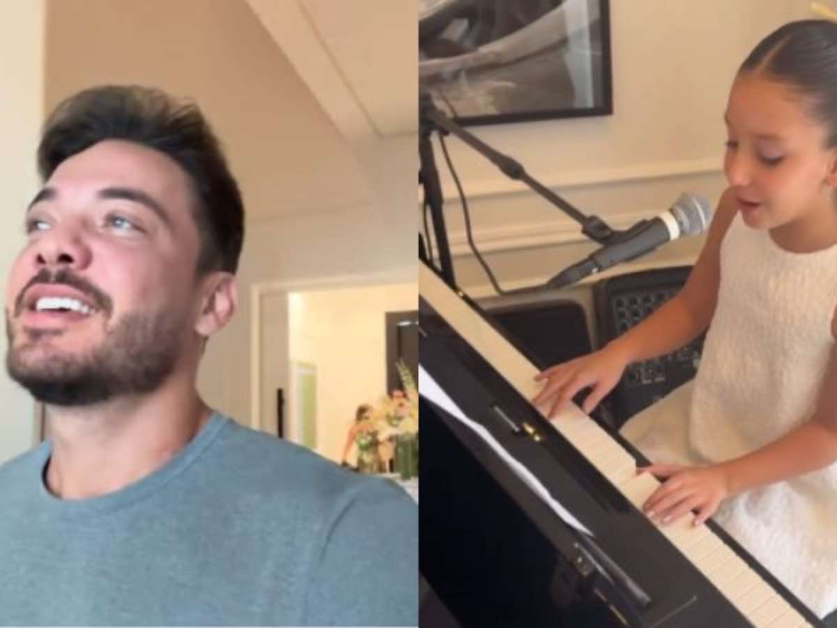 Wesley Safadão se emociona ao ver filha soltando a voz e tocando piano: 'Coisa linda'