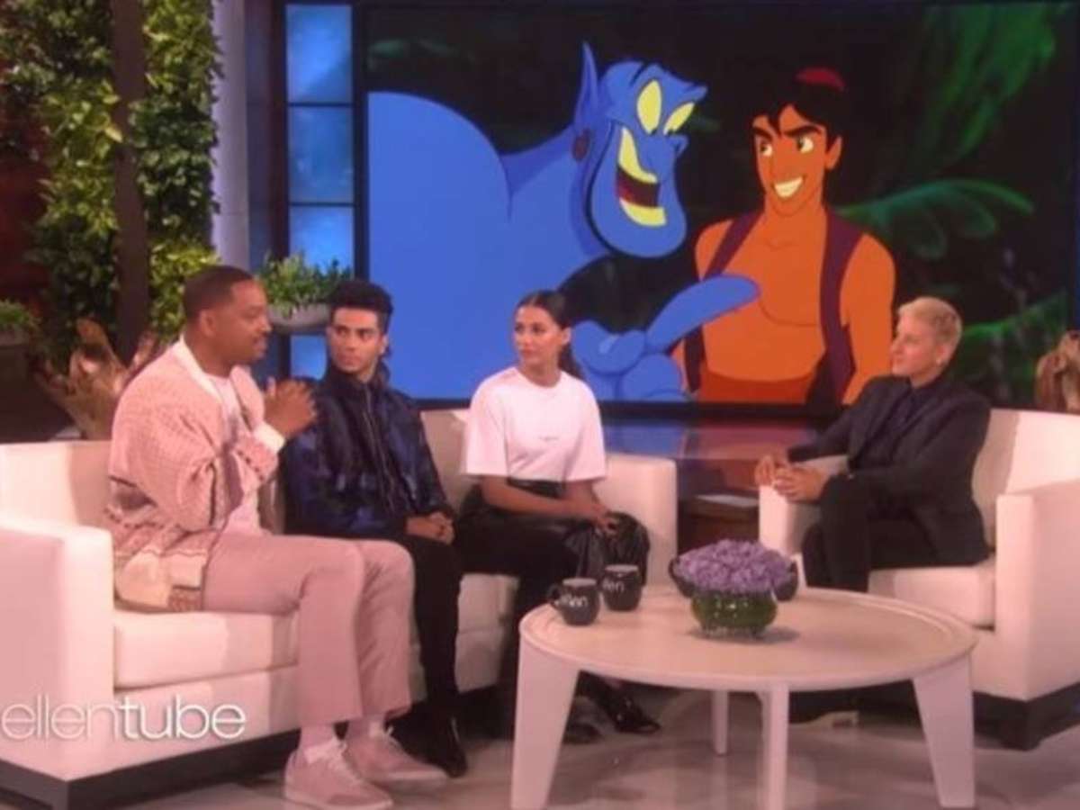 Além dele, Mena Massoud, que interpreta Aladdin, e Naomi Scott, a Jasmine, estiveram no The Ellen Show. No fim do programa, eles participaram de uma brincadeira. Ellen apresentou o jogo 'Esfregue a Lâmpada', repleto de duplo sentido.