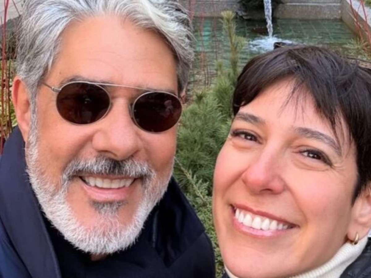 William Bonner está de férias em Nova York com sua esposa Natasha Dantas após deixar o Jornal Nacional, e só deve retornar à TV em 2026 para o Globo Repórter.