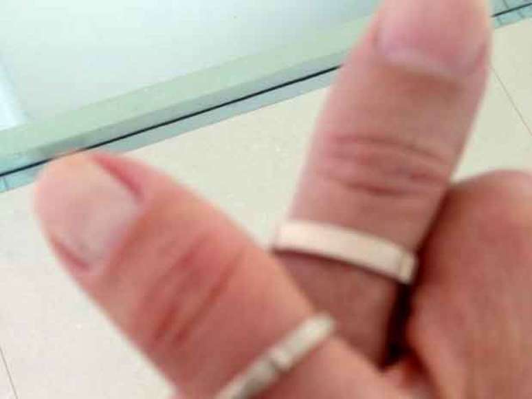 "Ai, minha gente, que casamento ou noivado? É uma aliança de compromisso, só. Presente dele, fofo né?", disse aos seguidores.