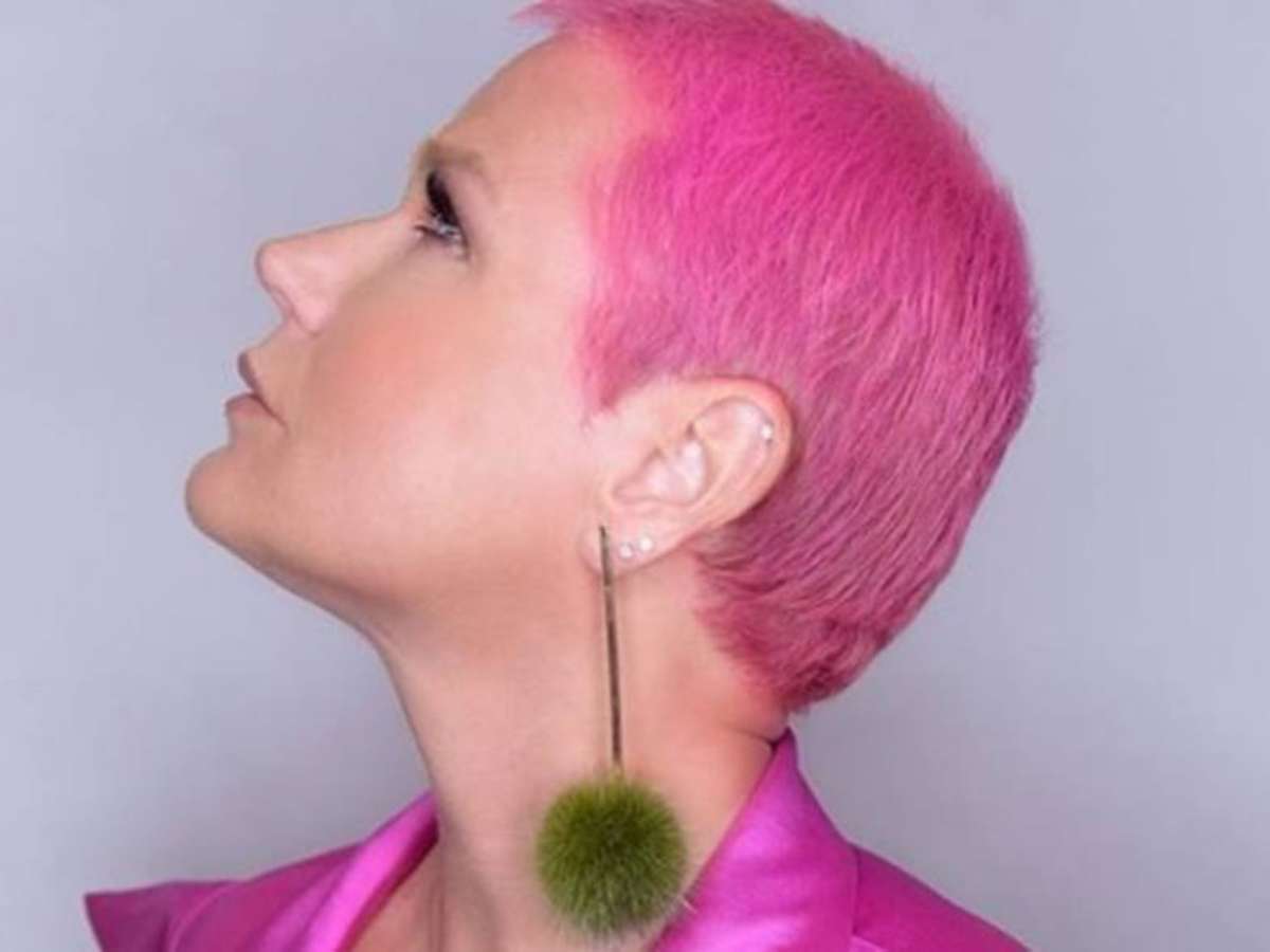 Xuxa Meneghel pinta cabelo de rosa para estreia do 'The Four Brasil'