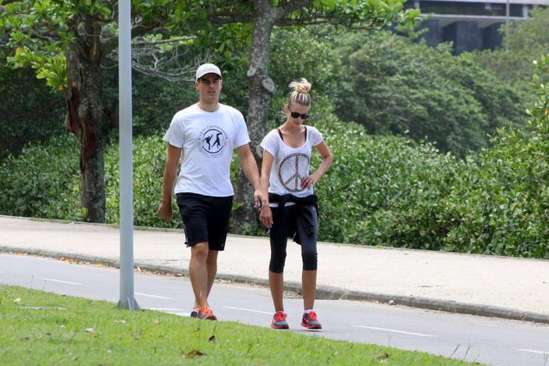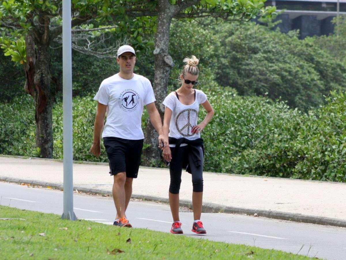 Yasmin Brunet caminha com o marido na Lagoa Rodrigo de Freitas