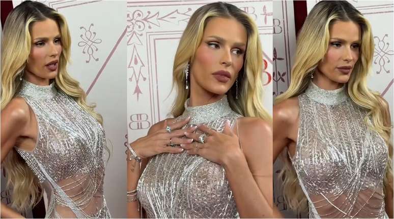 Entre tantas produções impecáveis, quem roubou a cena foi Yasmin Brunet. A modelo apostou em um vestido prateado assinado pela estilista Fabiana Milazzo, repleto de pedrarias, franjas e ousadia na transparência. O resultado? Yasmin foi eleita a mais bem vestida da noite, de acordo com o portal GShow, conquistando 70,74% dos votos em uma votação promovida pela organização.