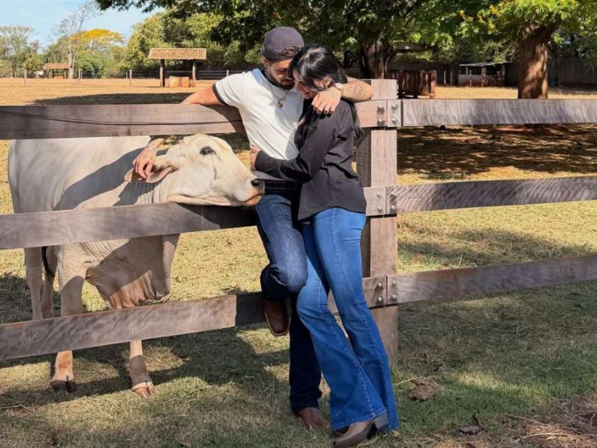 Os cantores Zé Felipe, de 27 anos, e Ana Castela, de 21, encantaram os fãs nas redes sociais ao compartilharem fotos em que aparecem agarradinhos em uma fazenda. Na legenda, o filho de Leonardo marcou a boiadeira, e colocou um emoji de coração. Os dois aparecem abraçados na imagem usando calça jeans e botas combinando, em clima de romance.