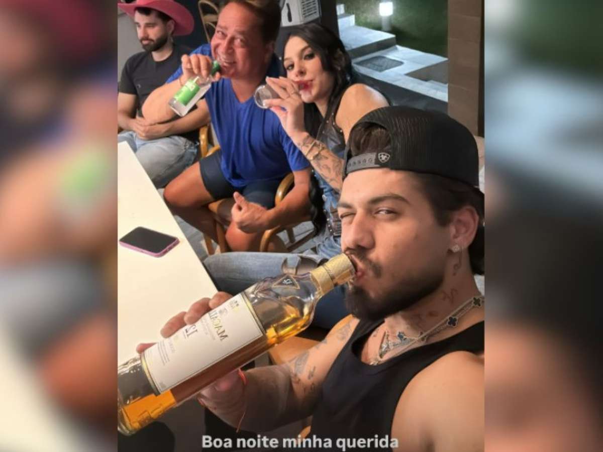 A cantora Ana Castela esteve na casa do cantor Leonardo na noite desta quarta-feira, 17, em meio a rumores de que estaria vivendo um romance com Zé Felipe, filho dele. Zé postou uma foto ao lado da cantora e do pai. “Boa noite, minha querida família”, escreveu o ex-marido da Virginia Fonseca na legenda da imagem em que aparece bebendo com Ana Castela e Leonardo.