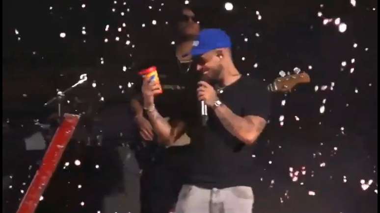 Zé Felipe, de 27 anos, reconheceu de longe um copo personalizado com o rosto de Ana Castela, de 22 anos, sua ex-namorada, durante show em Quirinópolis, Goiás, na noite de sexta-feira, 23. Durante a apresentação, o cantor percebeu que um homem no palco estava bebendo em um copo estampado com o rosto da Boiadeira. Mesmo à distância, o artista identificou o rosto da cantora.