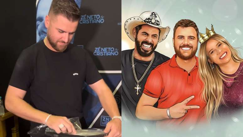 Zé Neto se emociona ao receber desenho realista em homenagem a amizade com Marília Mendonça e João Carreiro