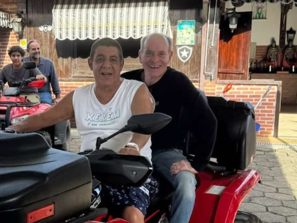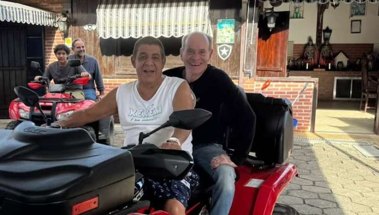 Zeca Pagodinho e Ney Matogrosso dão 'rolê de triciclo' em sítio no Xerém; veja