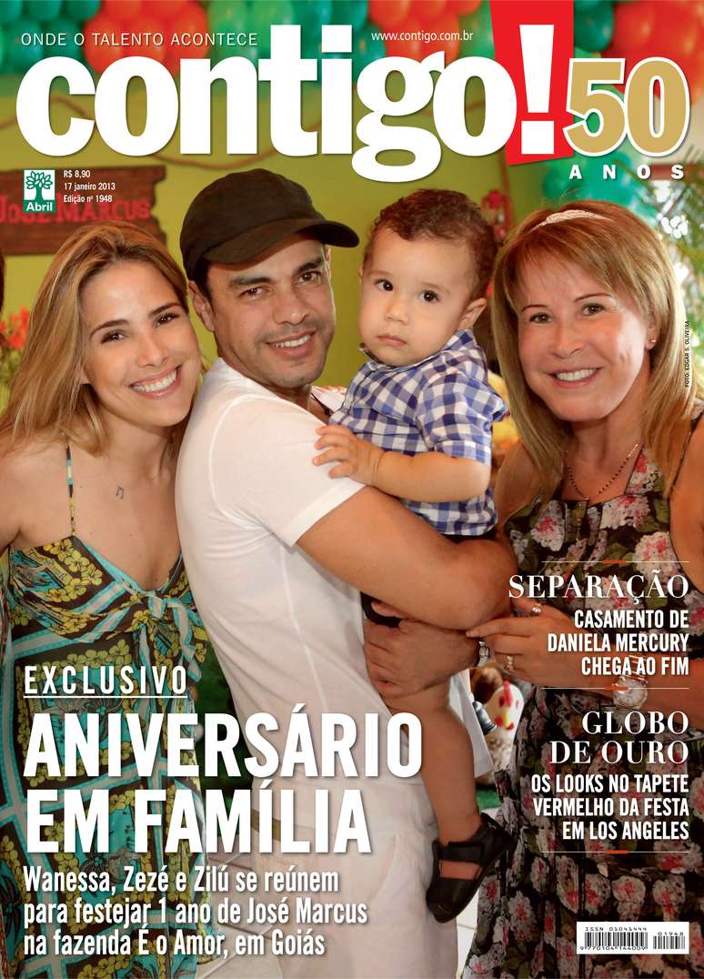 Destaque da revista Contigo! desta semana, Zezé di Camargo posou ao lado da filha, Wanessa, e de sua ex-mulher, Zilu, para a capa da publicação. O registro foi feito durante o aniversário de José Marcus, filho da cantora, que completou um ano de idade.