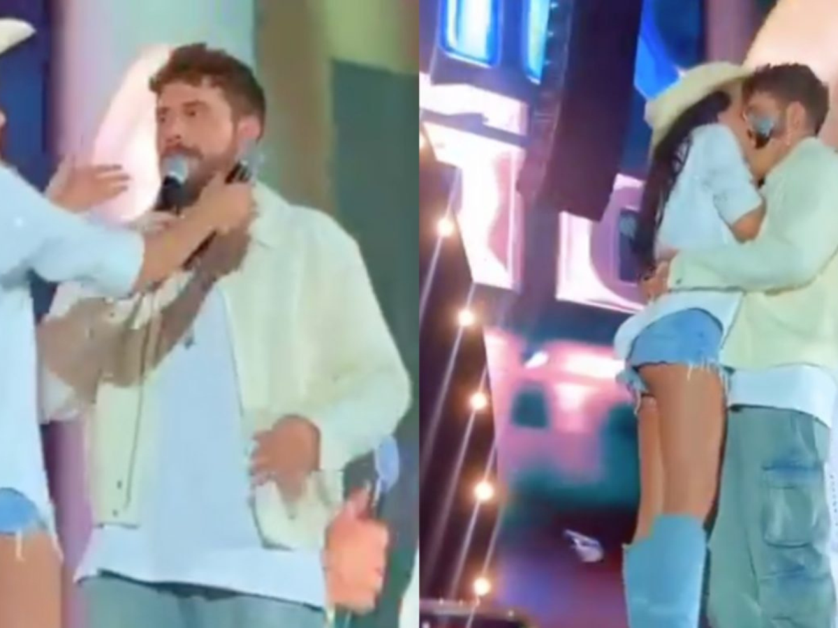A apresentação foi no Ribeirão Rodeo Music, em Ribeirão Preto e ao subir no palco, Ana beijou Gustavo.
