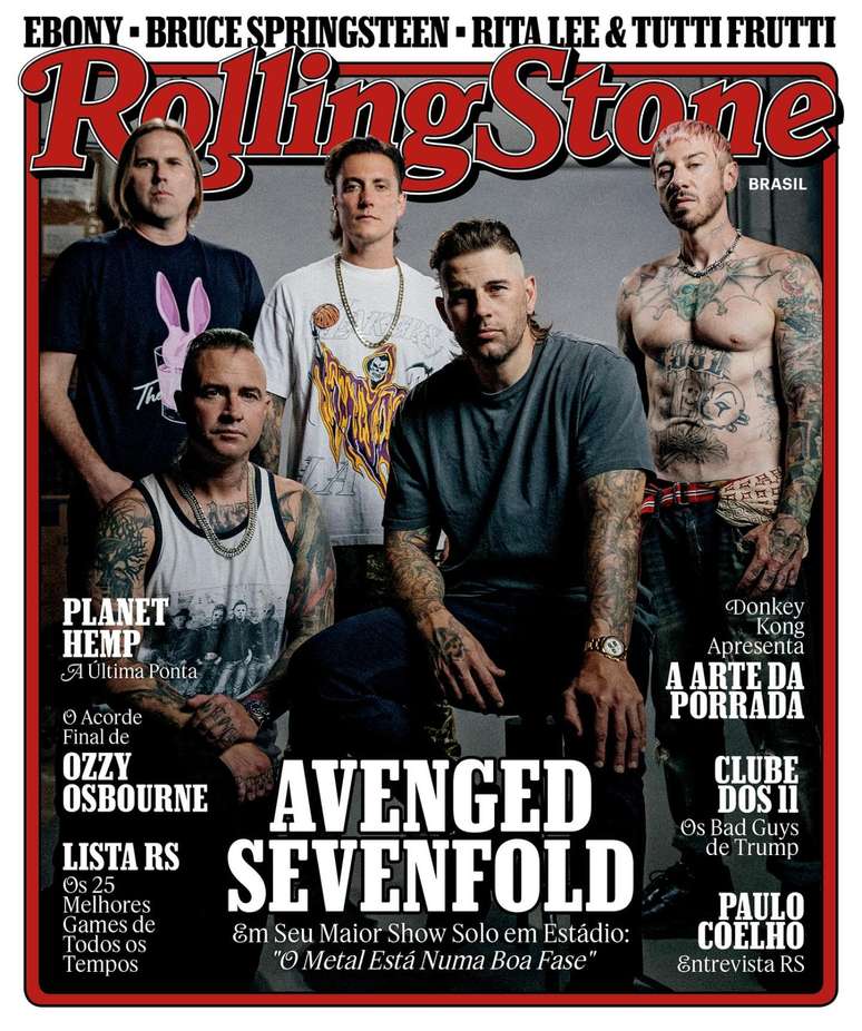 A nova edição da Rolling Stone Brasil traz uma entrevista exclusiva com os 5 integrantes do Avenged Sevenfold, às vésperas de seus maiores shows solo no Brasil. Também há um bate-papo com Planet Hemp, um especial Bruce Springsteen, homenagem a Ozzy Osbourne e muito mais. Compre pelo site da Loja Perfil.
