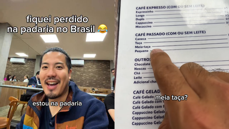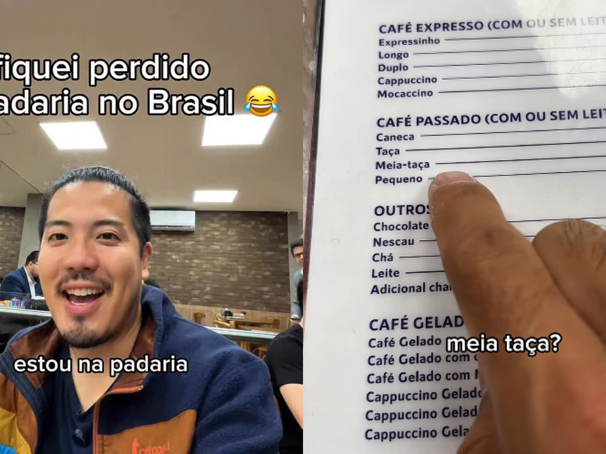 Se já é difícil para os brasileiros entenderem tantas expressões diferentes no próprio país, nem dá para imaginar como fica a cabeça de um estrangeiro lendo um simples cardápio em português. O influenciador japonês Tsuyoshi Yamaguchi, o Guti, resolveu sentar em uma padaria no Rio Grande do Sul, para pedir um café. Ele só não esperava encontrar opções na "taça" e não na "xícara". O momento viralizou nas redes sociais neste domingo, 19.
