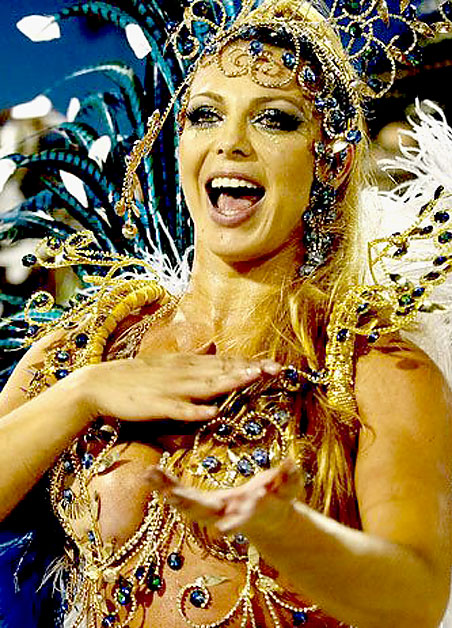 Sheila mostrou samba no pé e cantou junto com a Tucuruvi no desfile de 2010. Foto: Getty Images.