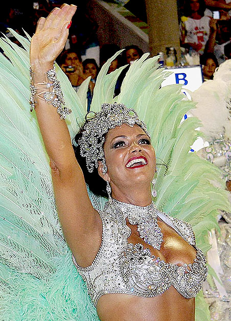 Luiza Brunet esbanja simpatia em desfile da Imperatriz Leopoldinense em 2010. Foto: Rudy Trindade/Futura Press.