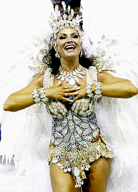 Luiza Brunet se emociona em desfile da Imperatriz Leopoldinense em 2009. Foto: Marcio Nunes/ Photo Rio News.