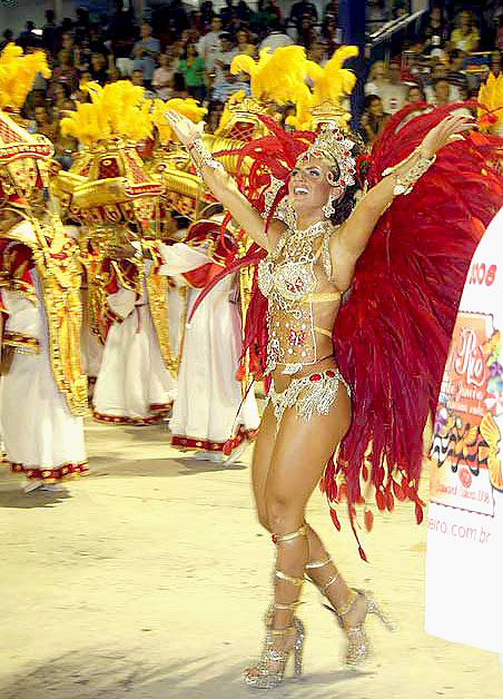 Mirella Santos samba à frente da bateria da Salgueiro em 2008. Foto: André Muzzel/Futura Press .