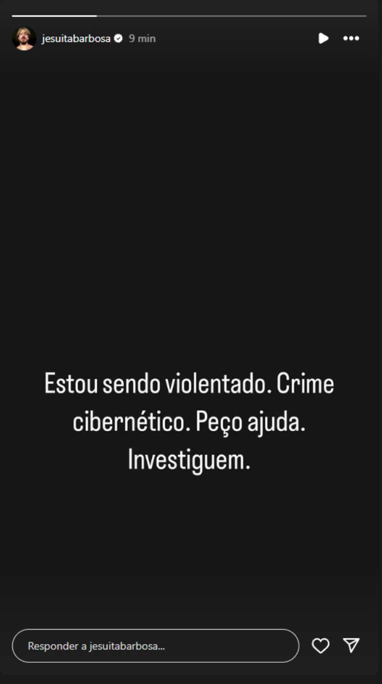 Jesuíta Barbosa assustou os fãs nesta sexta-feira (1/3), ao escrever um pedido de socorro nos Stories do Instagram. O intérprete de Jove em "Pantanal" publicou um curto texto afirmando que estava sendo "violentado" e era vítima de crime. A mensagem ainda pedia para as pessoas investigarem, sem esclarecer nada.