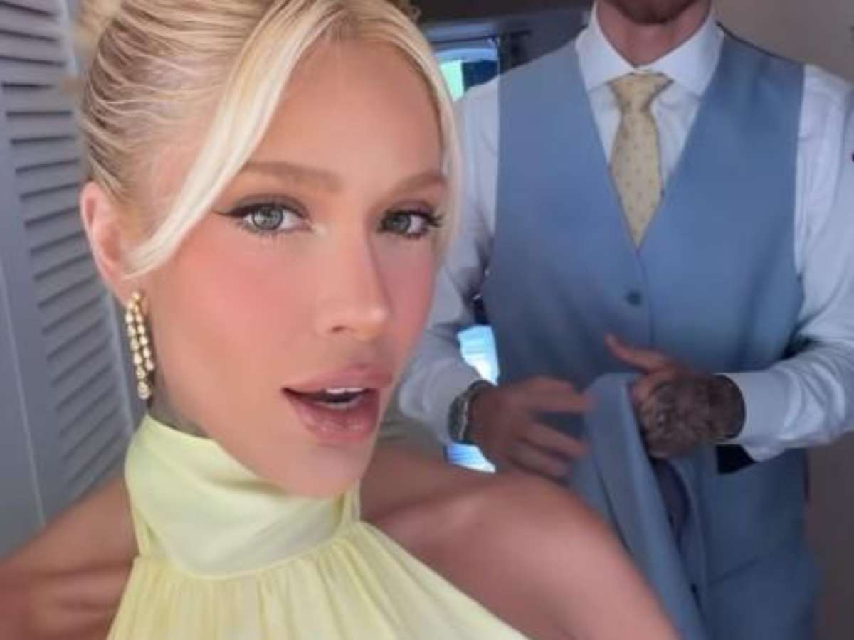 Karoline Lima e Léo Pereira chamaram atenção nas redes sociais ao surgirem elegantes para o casamento de amigos. A influenciadora e o jogador compartilharam registros já prontos para a cerimônia de Léo Ortiz com Maitê Lo Sardo, realizada nesta segunda-feira (5), na Fazenda Vila Rica, no interior de São Paulo.