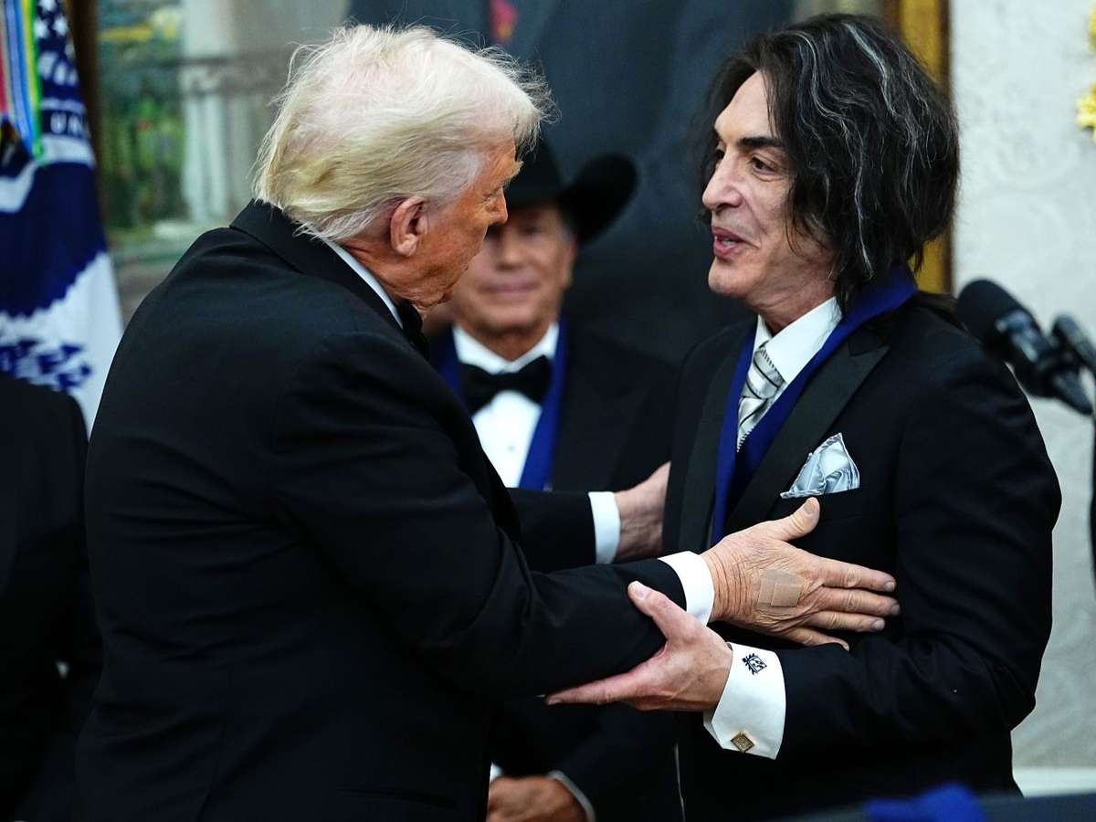 Trump então entregou as medalhas a Strait, ao ator da Broadway Michael Crawford, à "rainha da discoteca" Gaynor ("Que cabelo lindo", disse Trump), à estrela de "alguns dos melhores filmes de todos os tempos" Stallone e aos "membros da incrível banda de rock" Kiss, Gene Simmons, Paul Stanley, Peter Criss e, postumamente, Ace Frehley, cuja filha estava presente para receber a medalha redesenhada pela Tiffany & Co.