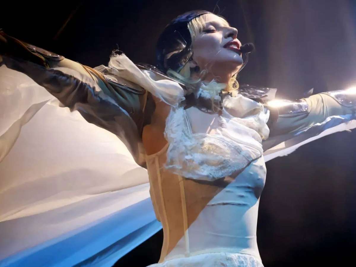 Mas não por muito tempo. No segundo ato, ela ressurgiu, literalmente, emergindo de um monte de terra vestindo um vestido branco com espartilho, cercada por dançarinos com máscaras de caveira. Eles dançaram ao som de "Perfect Celebrity", em um momento que parecia reconhecer de forma poética que o estrelato pleno só chega, muitas vezes, após a morte.