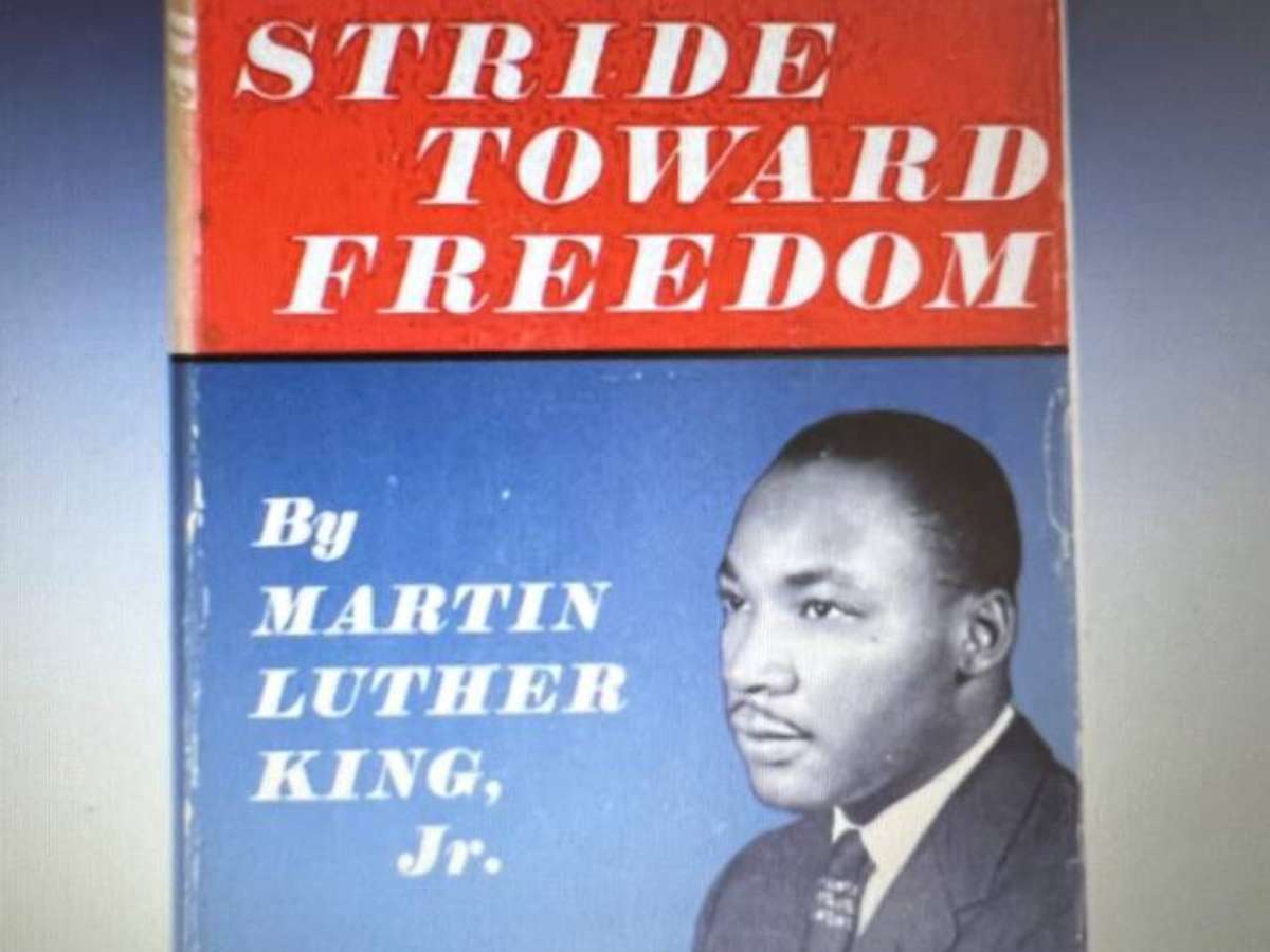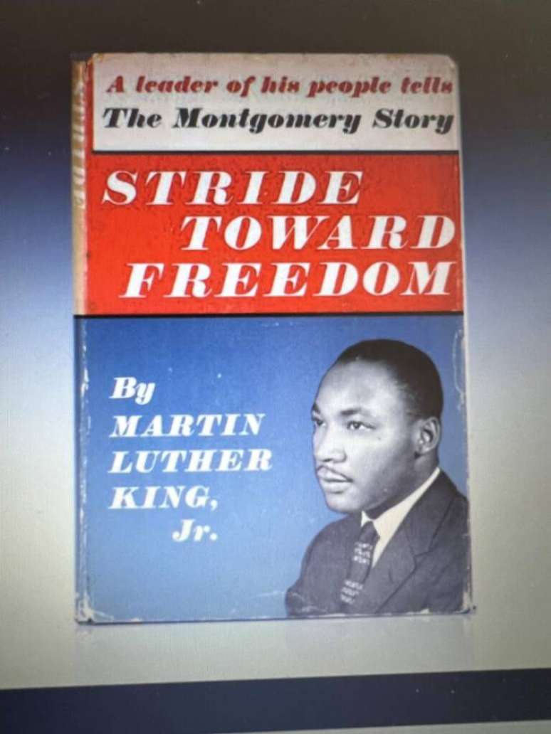 O exemplar do livro Stride Toward Freedom: The Montgomery Story, de Martin Luther King, com assinatura e dedicatória única do ativista, feita em 1958, está sendo leiloado por cerca de R$ 173 mil, nos Estados Unidos. A dedicatória especial foi feita, na época, para a enfermeira Gwen Brown, que cuidou de Martin após uma tentativa de assassinato.