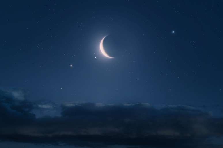 Quando Crescente, apenas parte da superfície iluminada do astro fica visível, ganhando destaque logo após o pôr do sol