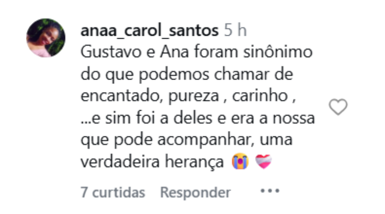 Frases como "isso sim é amor verdadeiro" e "ela e o Gustavo foi tão especial!!" foram ditas pelos fãs.