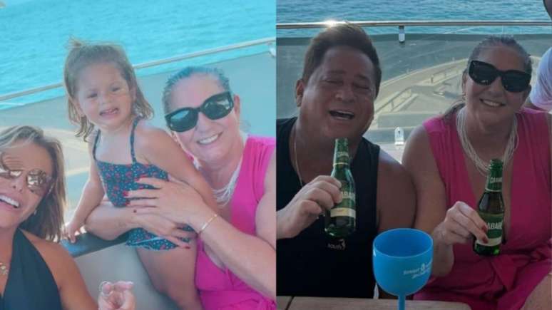 Além as netas, Maria Alice e Maria Flor, apareceram no álbum de Margareth, Poliana Rocha e Leonardo, também surgiram nos cliques do dia em alto mar. A mãe da empresária ainda chamou a atenção ao fazer poses com um vestido rosa, aproveitando a paisagem do local.