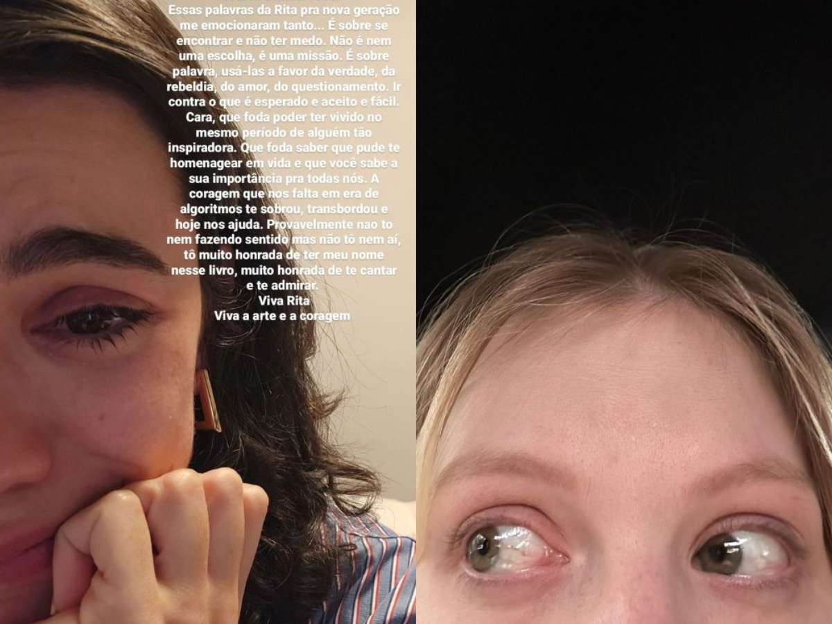 "Cara, que fod* poder ter vivido no mesmo período de alguém tão inspiradora. Que fod* saber que pude te homenagear em vida e que você sabe a sua importância para todas nós", continuou Manu. "A coragem que nos falta em era de algoritmos te sobrou, transbordou e hoje nos ajuda. Provavelmente não estou nem fazendo sentido, mas não tô nem aí, tô muito honrada de ter meu nome nesse livro, muito honrada de te cantar e te admirar. Viva Rita! Viva a arte e a coragem".