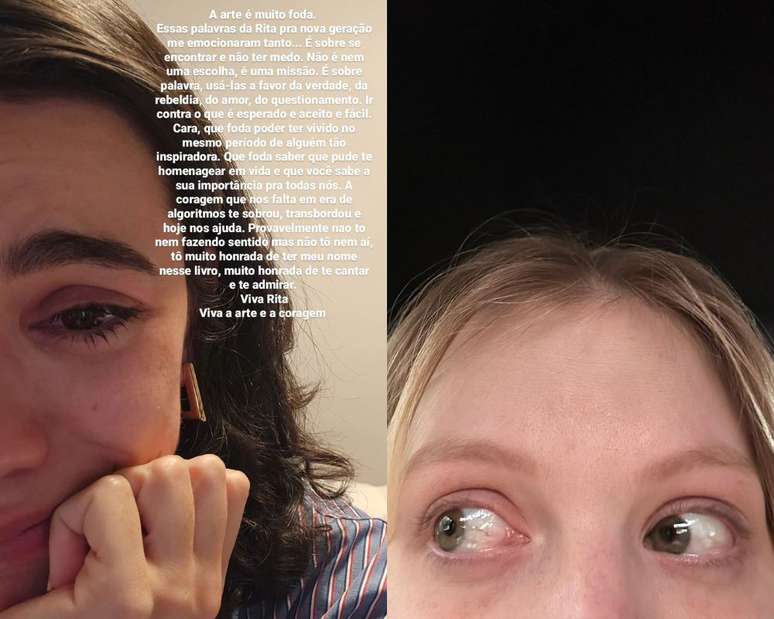 No Twitter, Luísa apareceu chorando em uma foto ao lado da citação de seu nome no livro da cantora. "Acabei de ver. Não tenho palavra alguma pra falar agora. Rita, mais uma vez, te agradeço", escreveu emocionada.