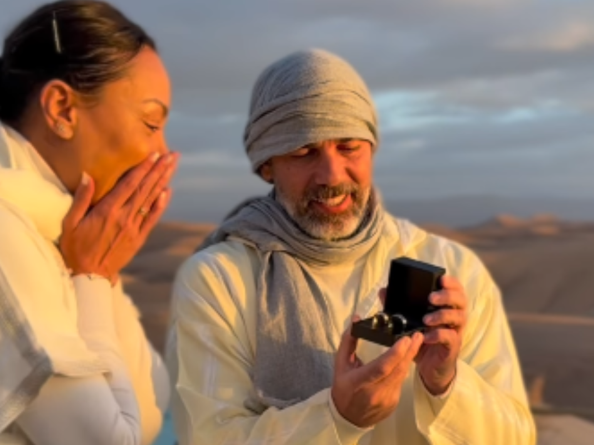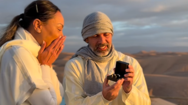 Marcelo Faria oficializou a união com Thatiana Travassos em um cenário fora do comum: o deserto de Agafay, no Marrocos.