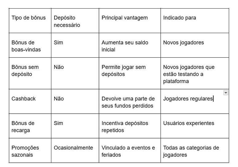 Nessa tabela conseguimos perceber que cada tipo de bônus desempenha um papel específico, ajudando os usuários a se manterem ativos e a aproveitarem o processo, estimulando o interesse, construindo confiança e criando uma motivação duradoura para retornar a seu cassino repetidamente.