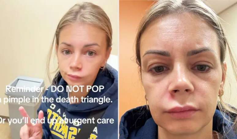 Mulher acaba em pronto-socorro após espremer espinha no 'triângulo da morte' - área do rosto 'pode levar a uma infecção no cérebro'. Entenda!
