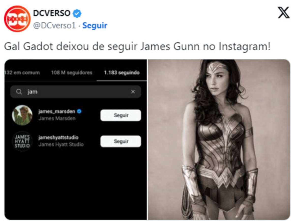 A atriz Gal Gadot, a Mulher Maravilha no Universo DC, deixou de seguir James Gunn, chefe da DC Studios, nas redes sociais. O cineasta está fazendo um reboot, sendo que Gadot e outros atores consagrados por papéis de super-heróis estão fora do elenco: Henry Cavill (Superman), Ben Affleck (Batman), Jason Momoa (Aquaman) e Ezra Miller (Flash). Fãs apontam ressentimento da atriz, que não voltaria mais à pele da heroína.