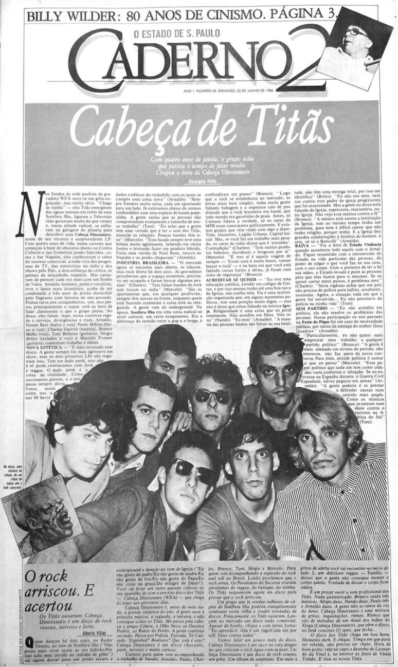Em uma reportagem do Estadão de 1986, para o lançamento de Cabeça, Bellotto afirmou que os Titãs queriam uma banda "menos popzinha". "Que sacanagem!", reage o músico, agora, com humor, ao ser lembrado da declaração. Ele credita a divergência entre show e estúdio à inexperiência. "Acontece com toda banda de rock".