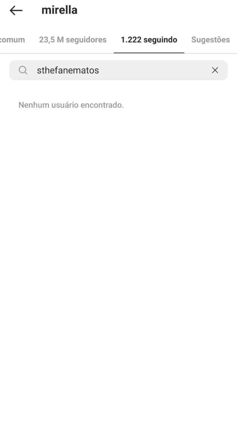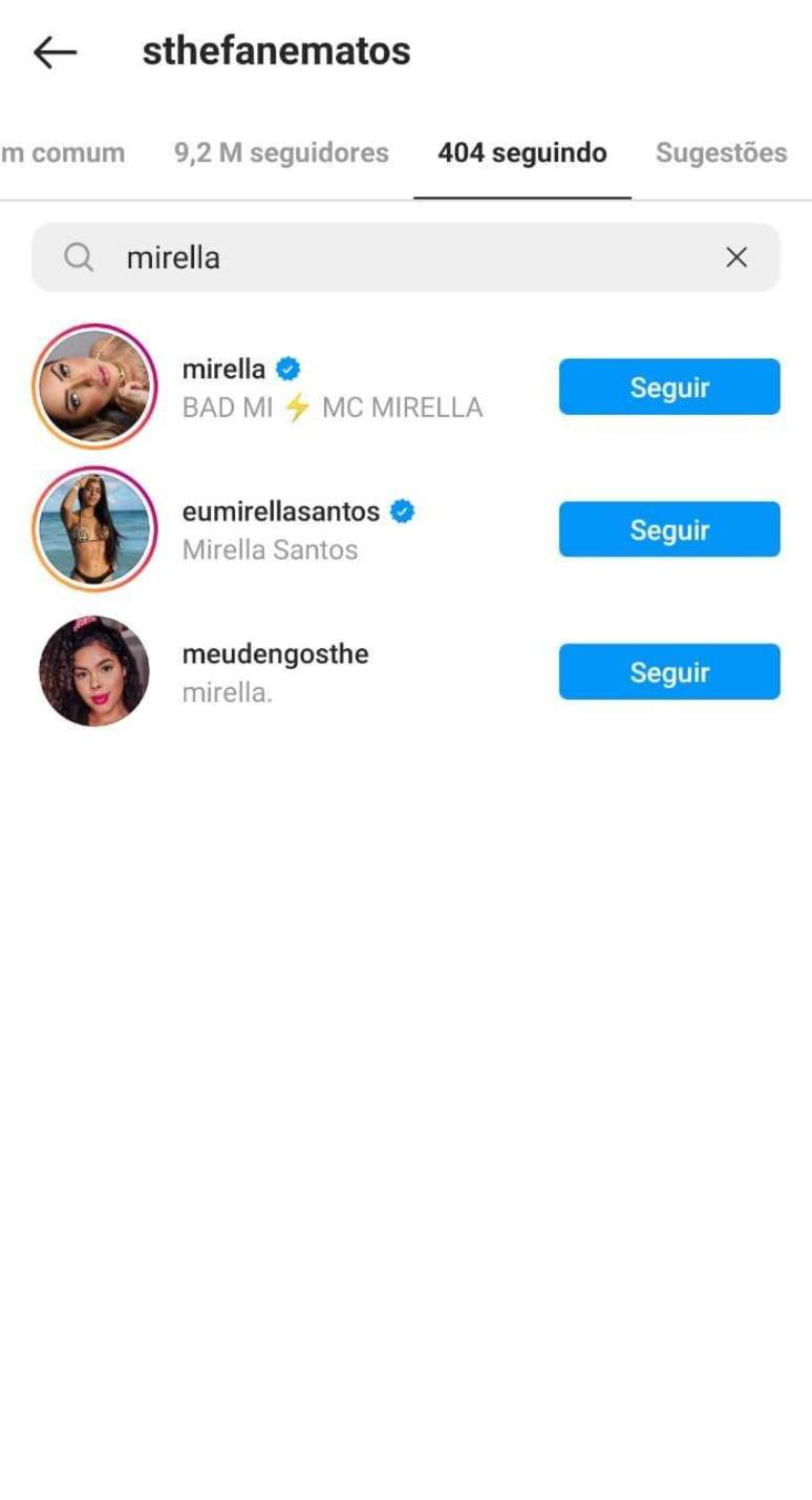 Mas a confirmação de que Mirella não gostou nem um pouco da situação, só veio na noite deste domingo (4), quando a famosa deu unfollow em Sther Mattos.