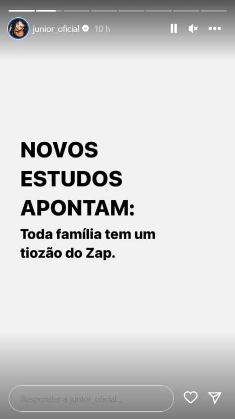 E concluiu: "E faço isso, mesmo em um cenário de escolha muito distante do que enxergo como ideal, mas consciente de que é preciso mudar. Novos estudos apontam: toda família tem um 'tiozão do zap'".