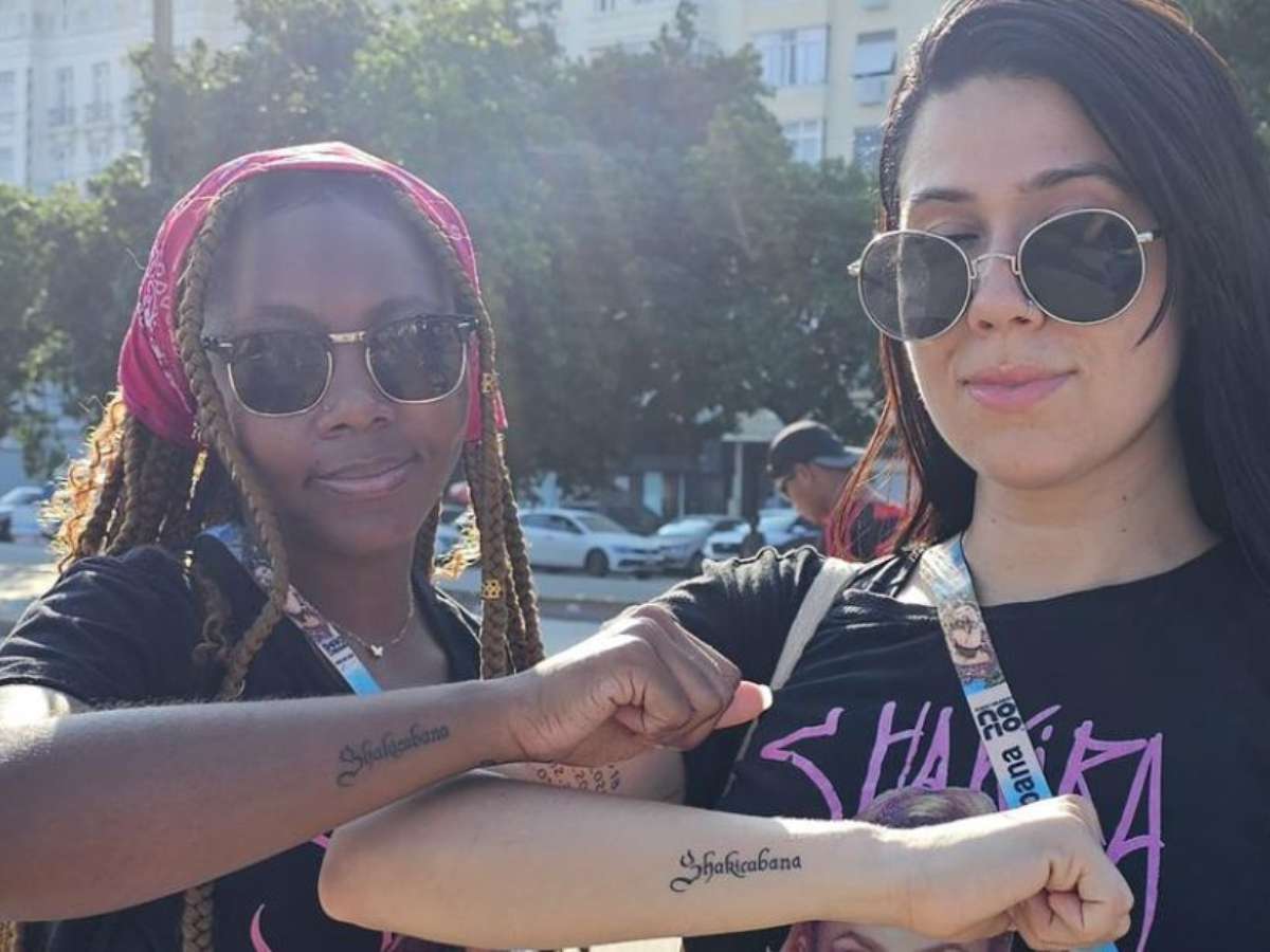 Mais do que amizade, a turismóloga Kariny Gomes e a educadora física Rayana de Souza dividem o amor pela cantora Shakira. A paixão pela diva pop é tanta que as duas ‘irmãs’, como descrevem a relação, decidiram marcar a pele ‘Shakiracabana’, em homenagem ao megashow gratuito da estrela na Praia de Copacabana. O evento está marcado para ocorrer na noite deste sábado, 2.