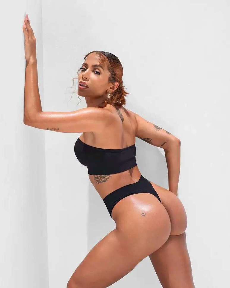 A popstar Anitta foi clicada no perfil oficial da marca de lingerie da cantora Rihanna neste domingo (1), onde ela usa um conjunto preto que pertence a uma linha de peças sem costura.
