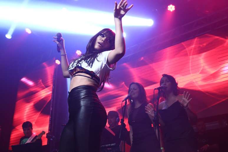 Anitta se apresenta com franjinha e barriga de fora em boate