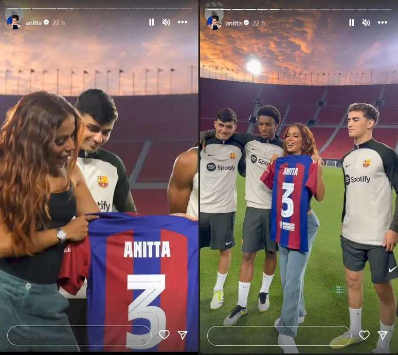 A popstar Anitta fez uma visita ao centro de treinamento do Barcelona em Los Angeles (EUA) e ganhou uma camisa personalizada como presente da equipe. A hitmaker de Envolver recebeu uma camisa do clube catalão com o número 3.