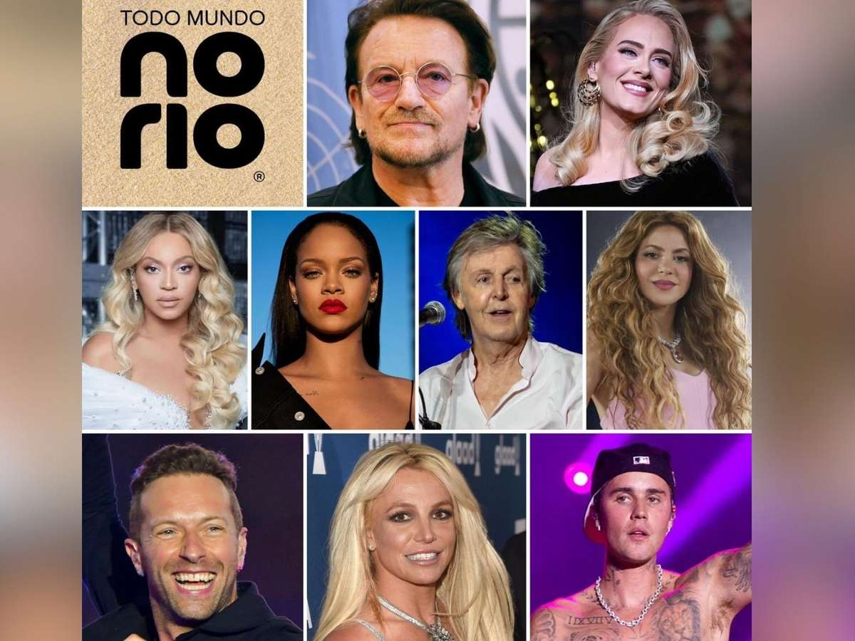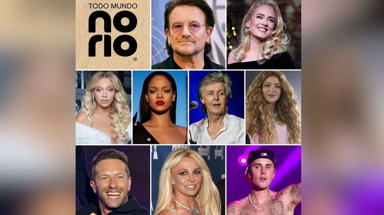 Na imagem, ele fez uma montagem com as fotos de Bono Vox (vocalista do U2), Adele, Beyoncé, Rihanna, Paul McCartney, Shakira, Chris Martin (vocalista do Coldplay), Britney Spears e Justin Bieber. Veja a publicação: