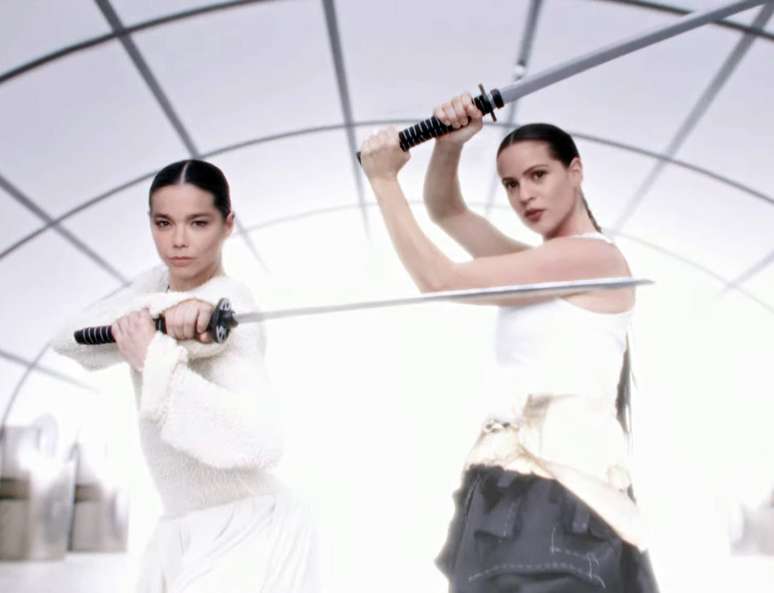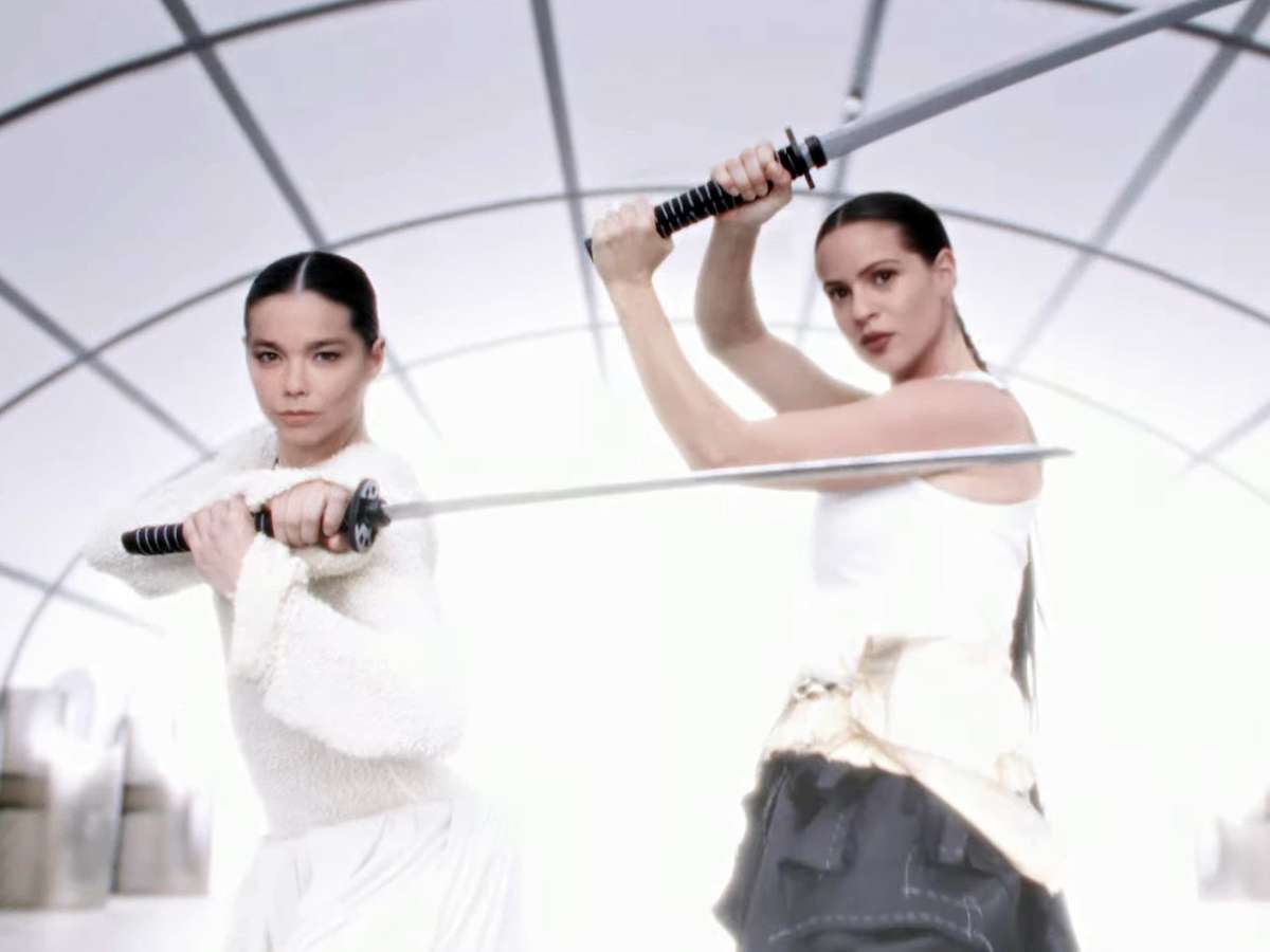 A cantora islandesa Björk lançou nesta terça (21/11) uma música em parceria com a espanhola Rosalía. Intitulada "Oral", a música ganhou um clipe em que as duas duelam com golpes de artes marciais, mas ao pegar espadas decidem se juntar contra um inimigo comum. O vídeo foi criado com a ajuda de dublês e efeitos visuais - que rejuvenescem Björk.