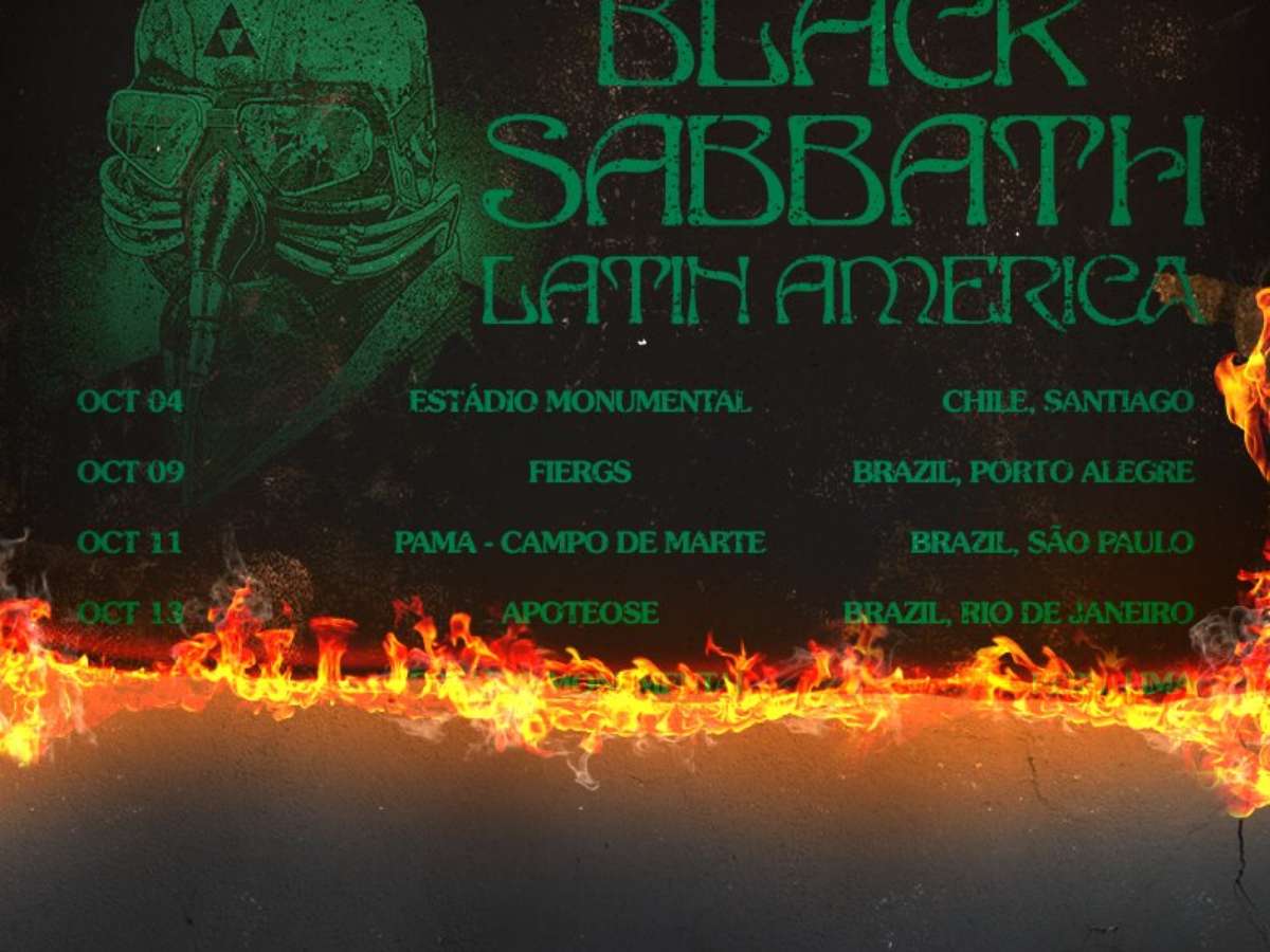 A caminho do Brasil, o Black Sabbath divulgou em seu Facebook os locais dos shows que fará na América Latina. Até o momento, apresentações no Brasil e Chile foram confirmadas.