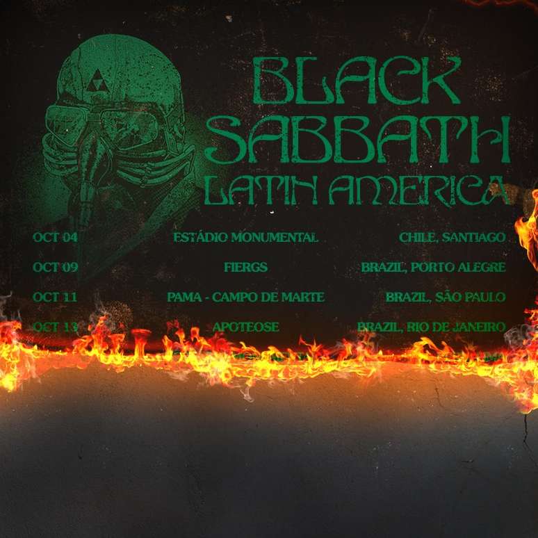A primeira parada da banda liderada por Ozzy Osbourne é em Santiago (4/11), onde toca no Estádio Monumental. De lá, a banda dá pontapé na etapa brasileira de shows: Porto Alegre (Fiergs - 9/10), São Paulo (Campo de Marte 11/10) e Rio de Janeiro (13/10).