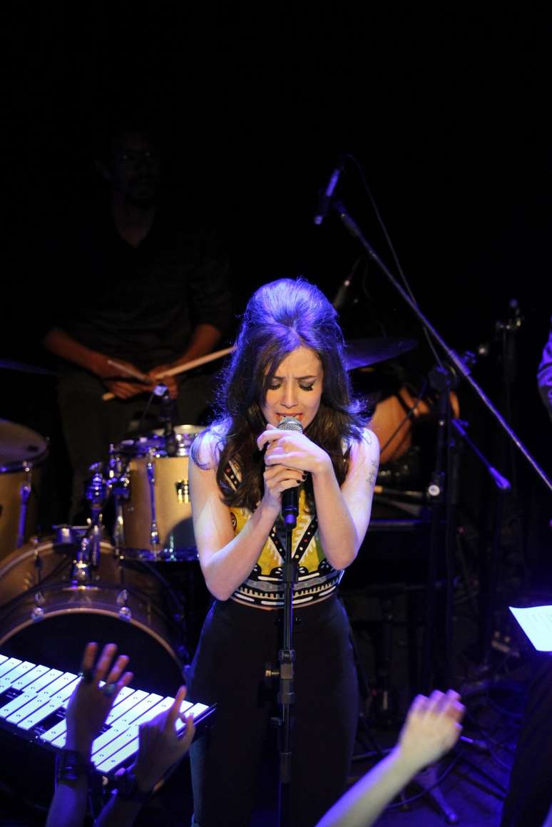 Já Marjorie, no palco, seguiu a linha 'retrô', com topete volumoso, calça ajustada ao corpo e blusinha estampada.