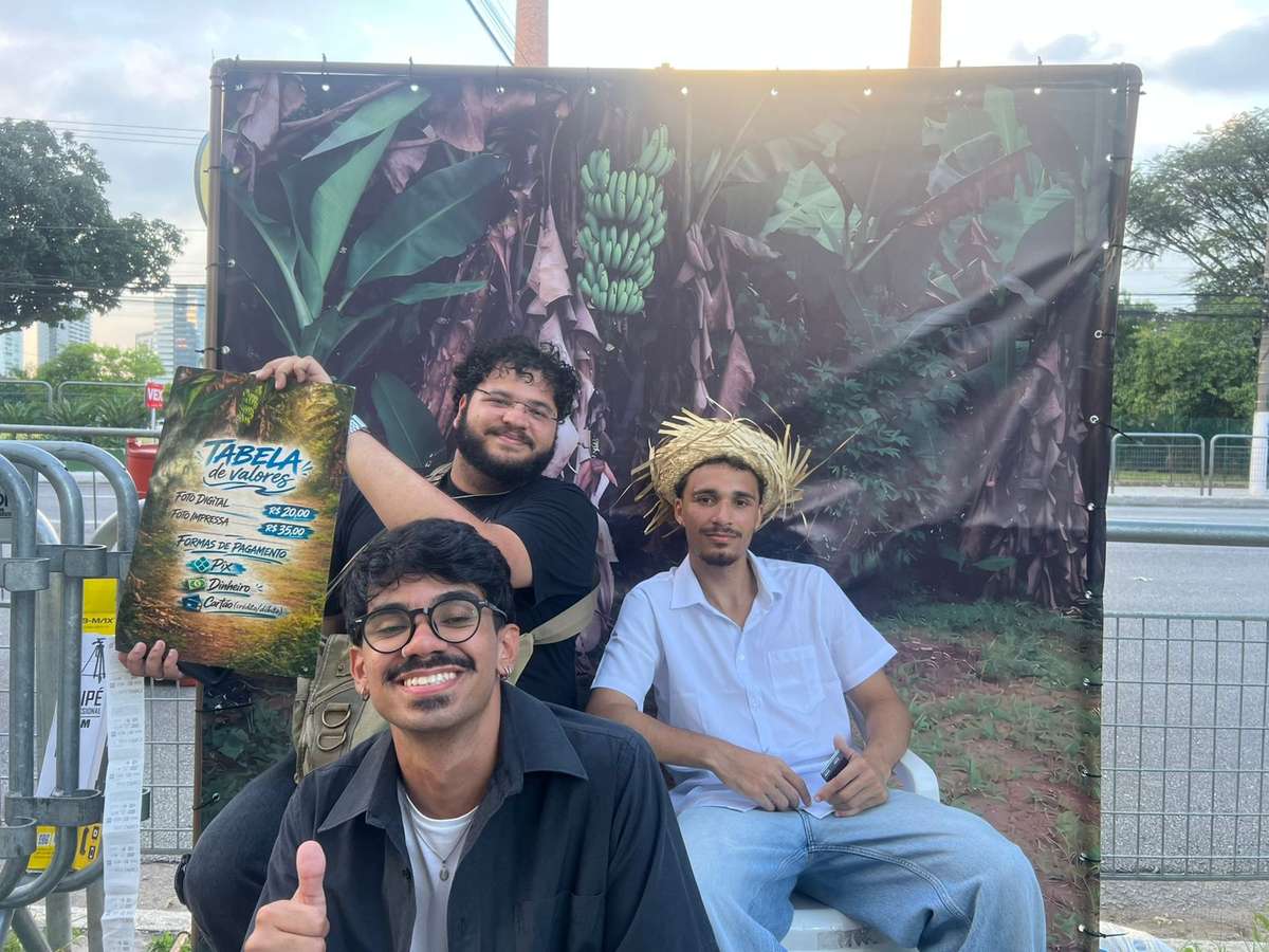 Ao lado dos amigos Cauã Antunes, 22, e Nicolas Carvalho, 20, o trio aborda o público com carisma, puxando os fãs com a frase: “Devia tirar mais fotos!”, referência direta ao título do álbum.
