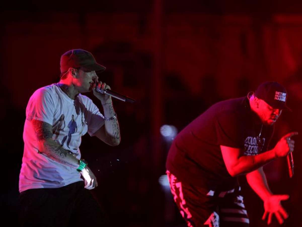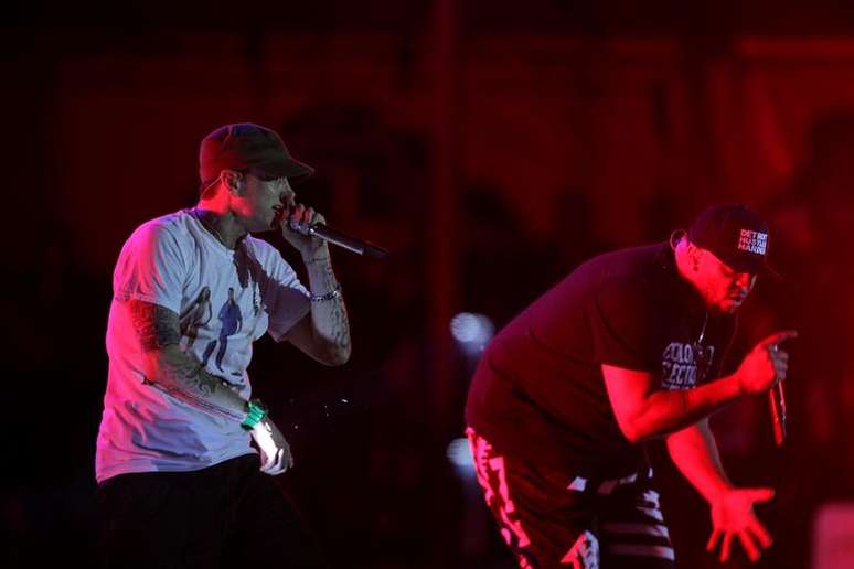 Eminem subiu ao palco acompanhado de Royce dá 5'9'', mas sem perder a pose, cumprimentando o público com um "Que lindo é o Brasil! Já faz quase seis anos que estive aqui".